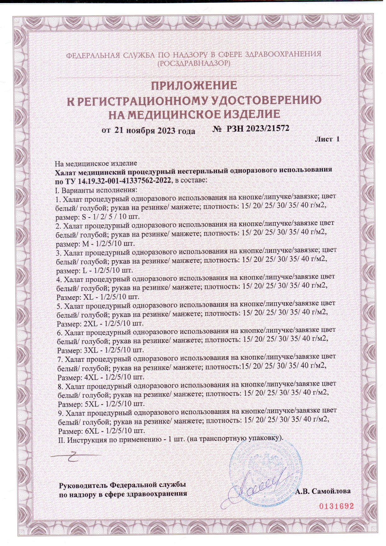 Халаты медицинские хирургические |