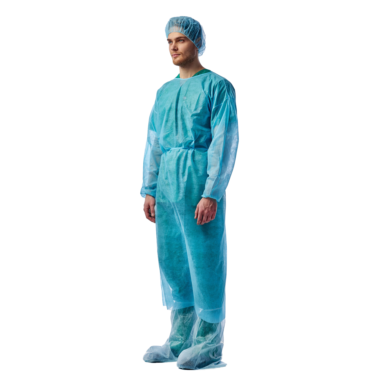 Халат хирургический, нетканный, спанбонд, 140 см, рукава на резинках, голубой 10/100 |