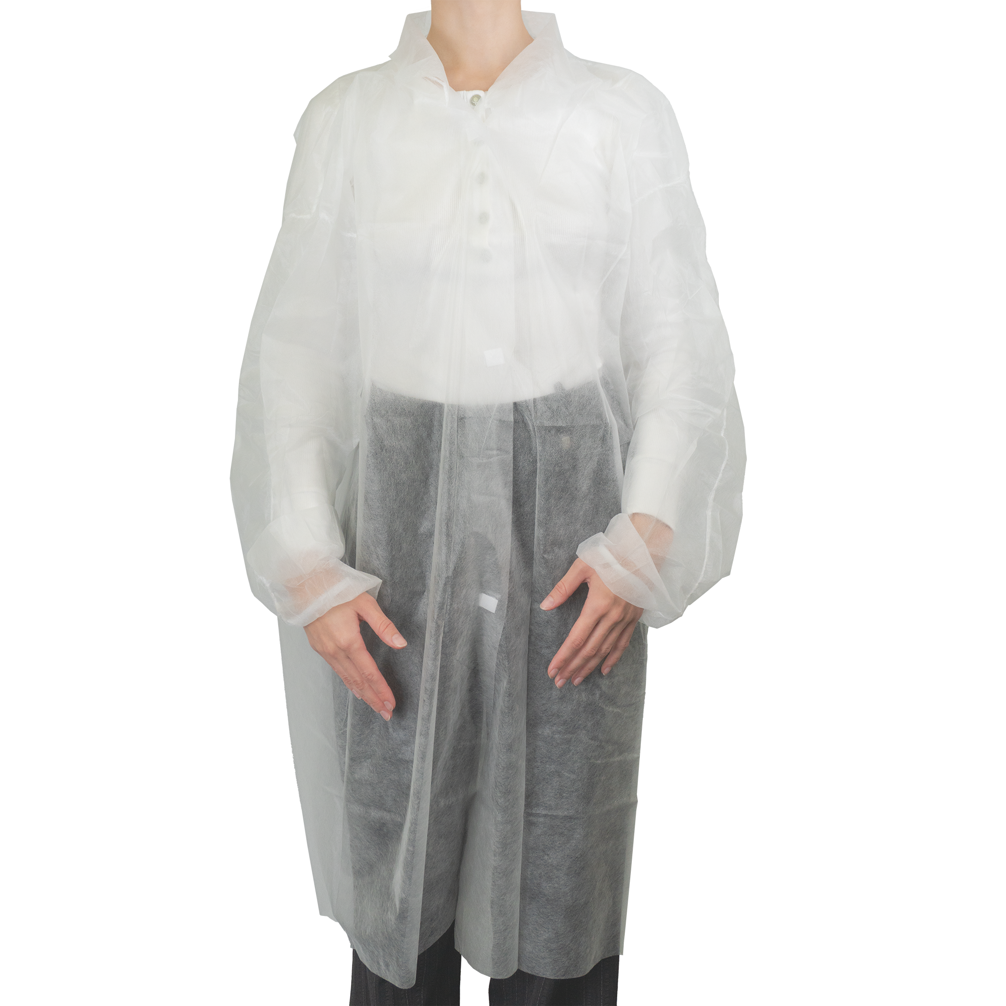 Одноразовый халат производится из гипоаллергенного, мягкого и легкого, но прочного материала – спанбонда. Водонепроницаем, не пропускает пыль и вредные микроорганизмы. Не требует стирки и сушки, подходит только для одноразового использования.