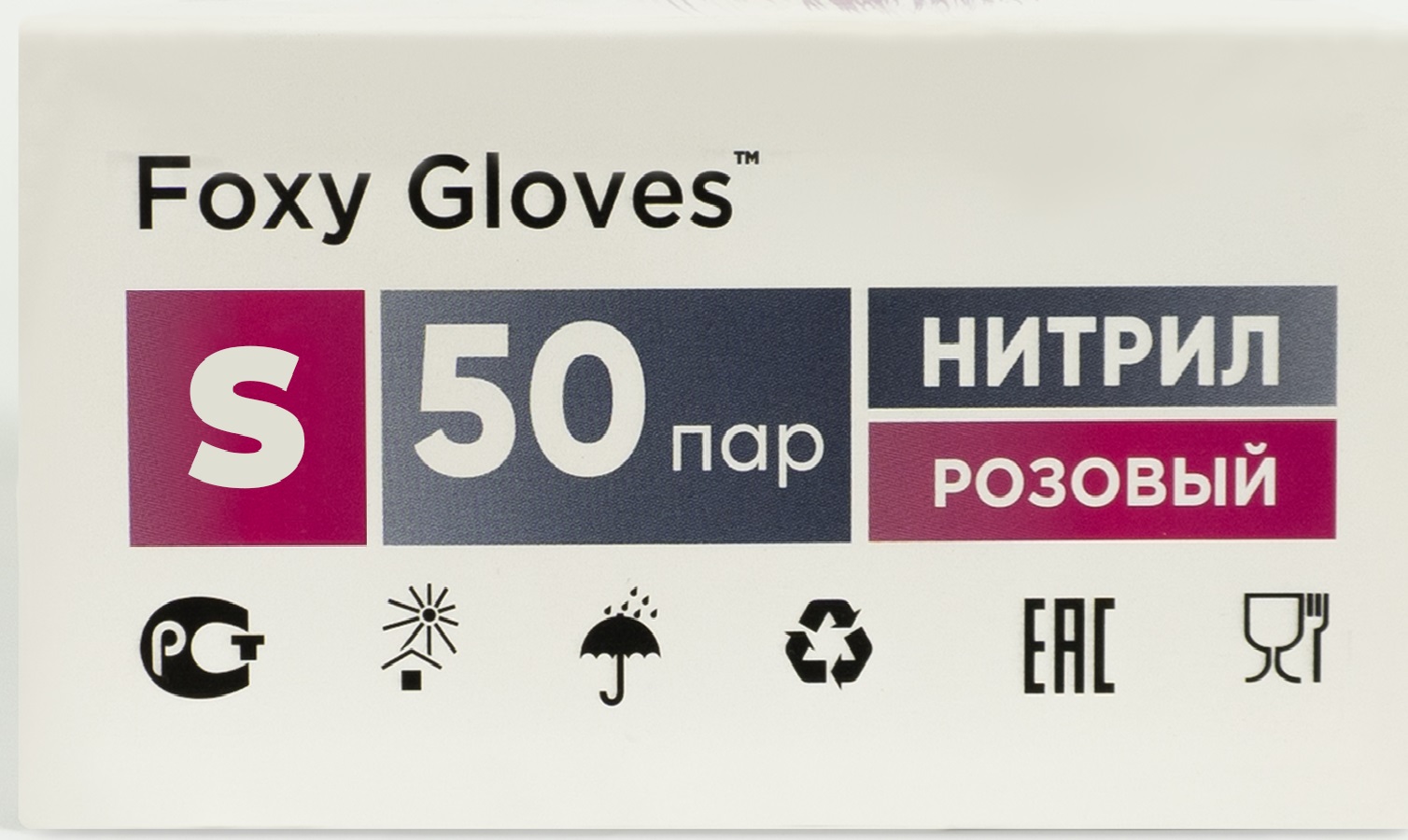 Перчатки нитриловые Foxy Gloves (Розовые), S №50/500 (НДС 20%) |
