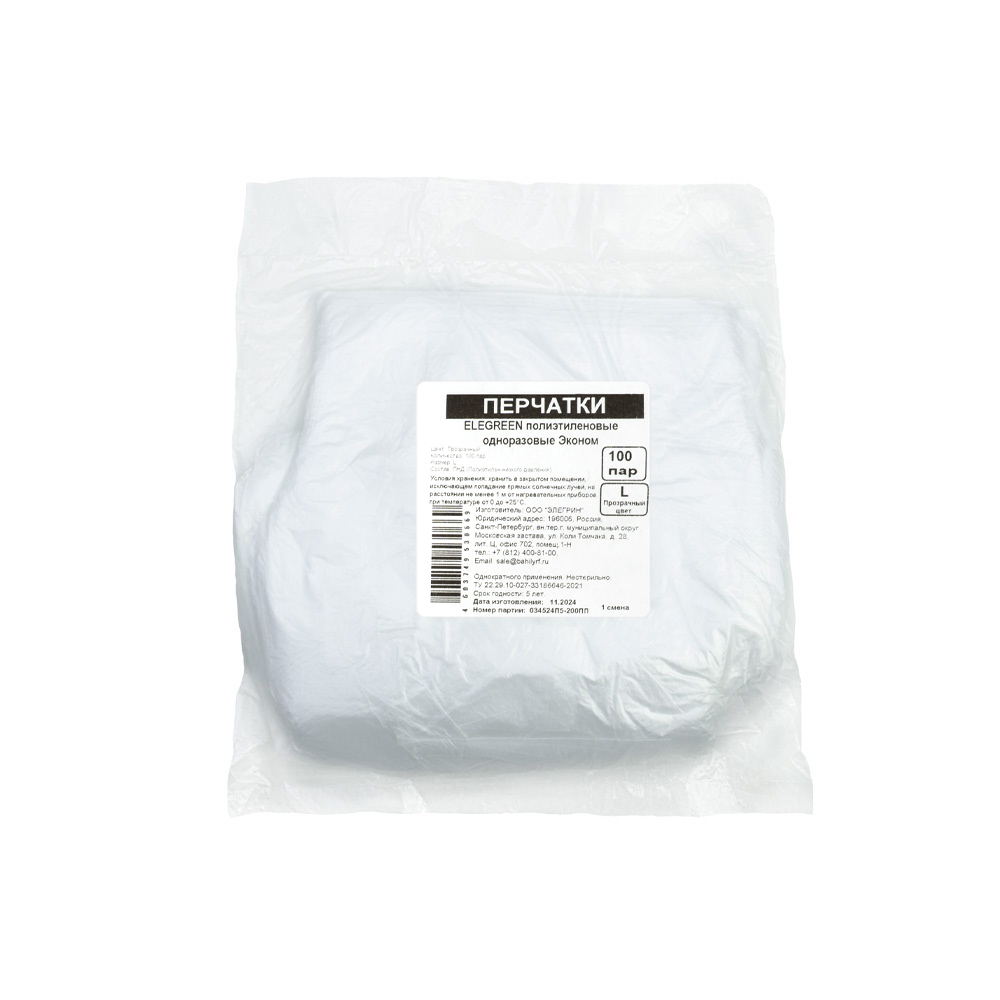 Перчатки ELEGREEN полиэтиленовые одноразовые (прозрачные) Эконом, L 100/5000 |
