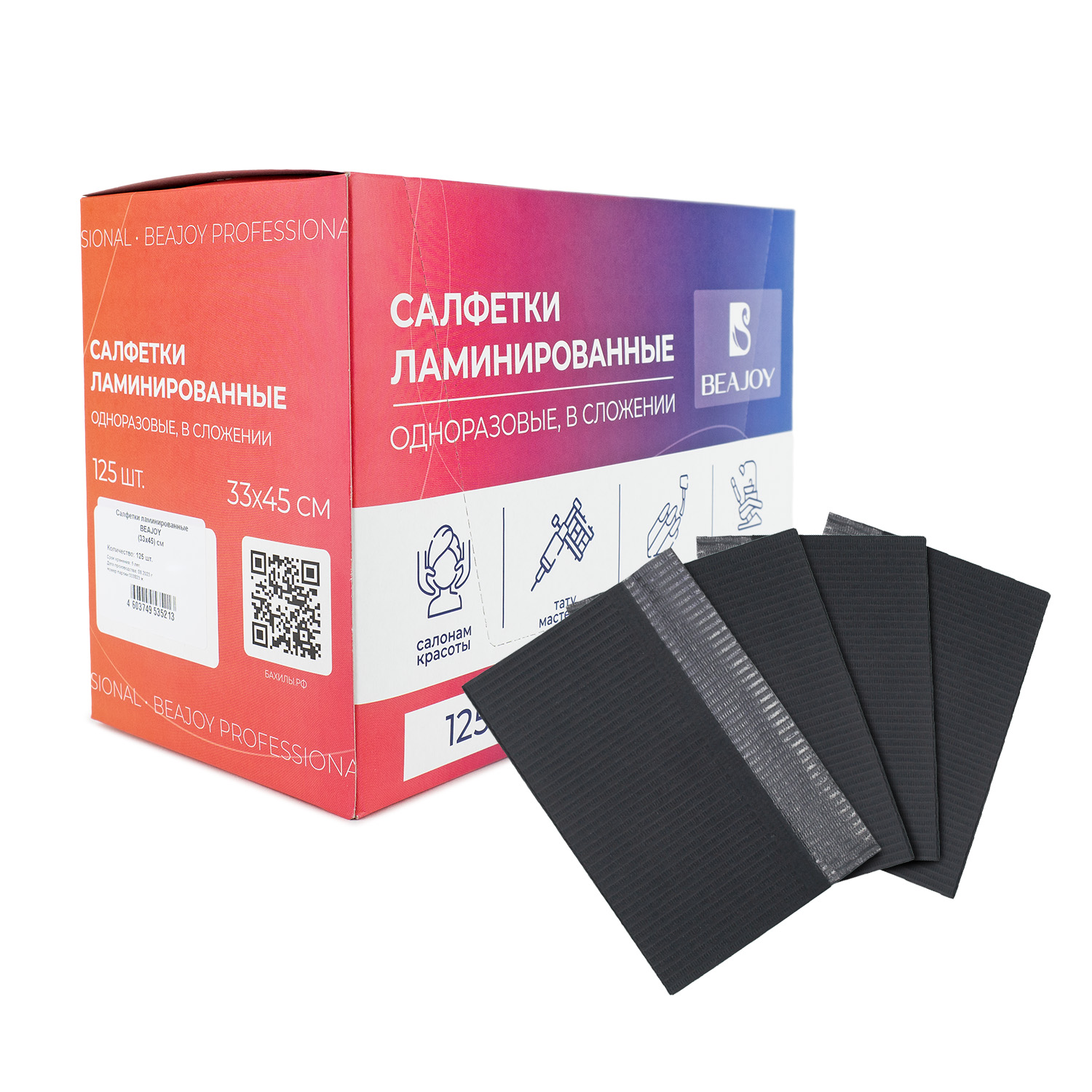 Салфетки ламинированные Beajoy 33х45 черные, № 125/1000 (бумага + полиэтилен) |