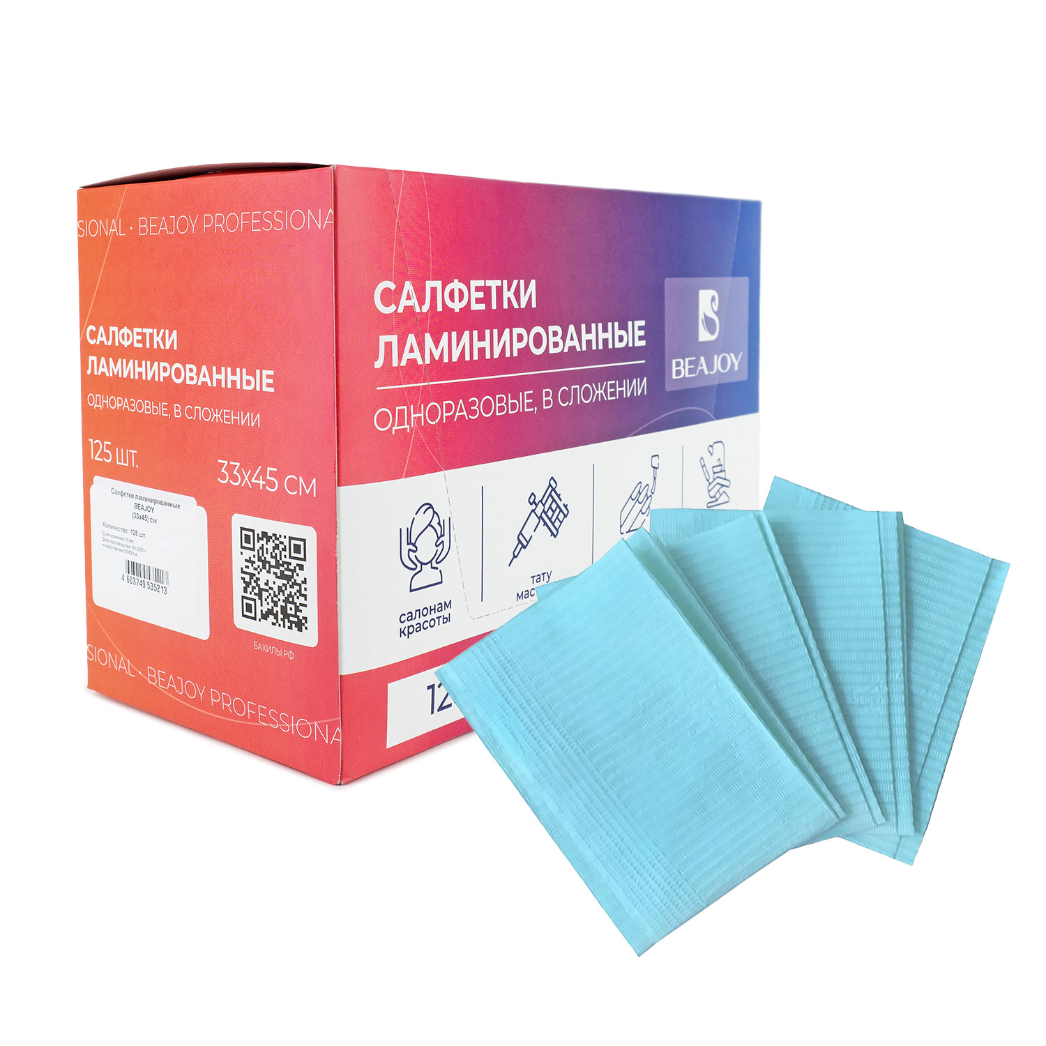 Салфетки ламинированные Beajoy 33х45 голубые, № 125/1000 (бумага + полиэтилен) |