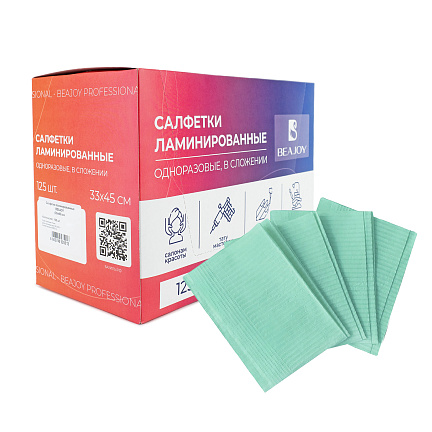 Салфетки ламинированные Beajoy 33х45 зеленые, № 125/1000 (бумага + полиэтилен) |