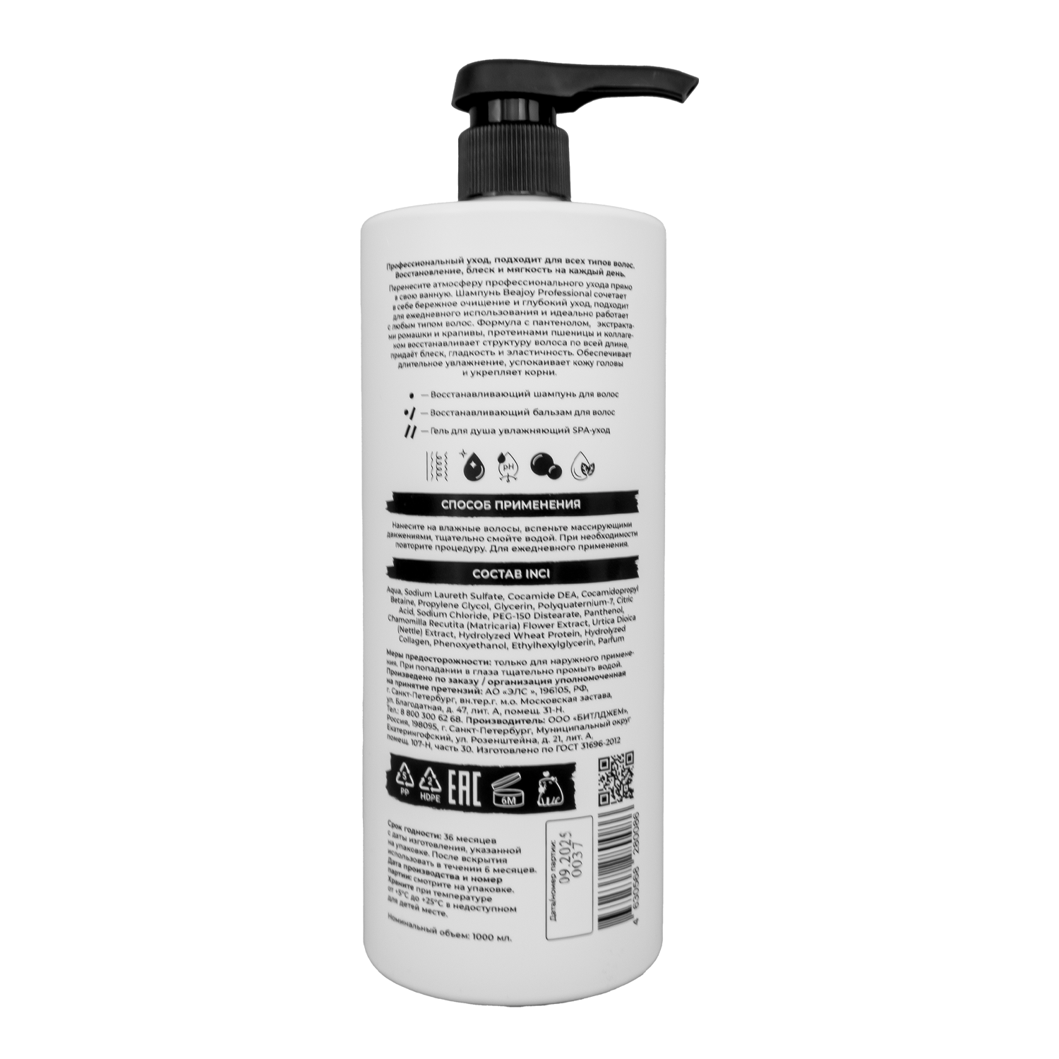 Шампунь для волос Beajoy Профессиональный Восстанавливающий 1000 мл |